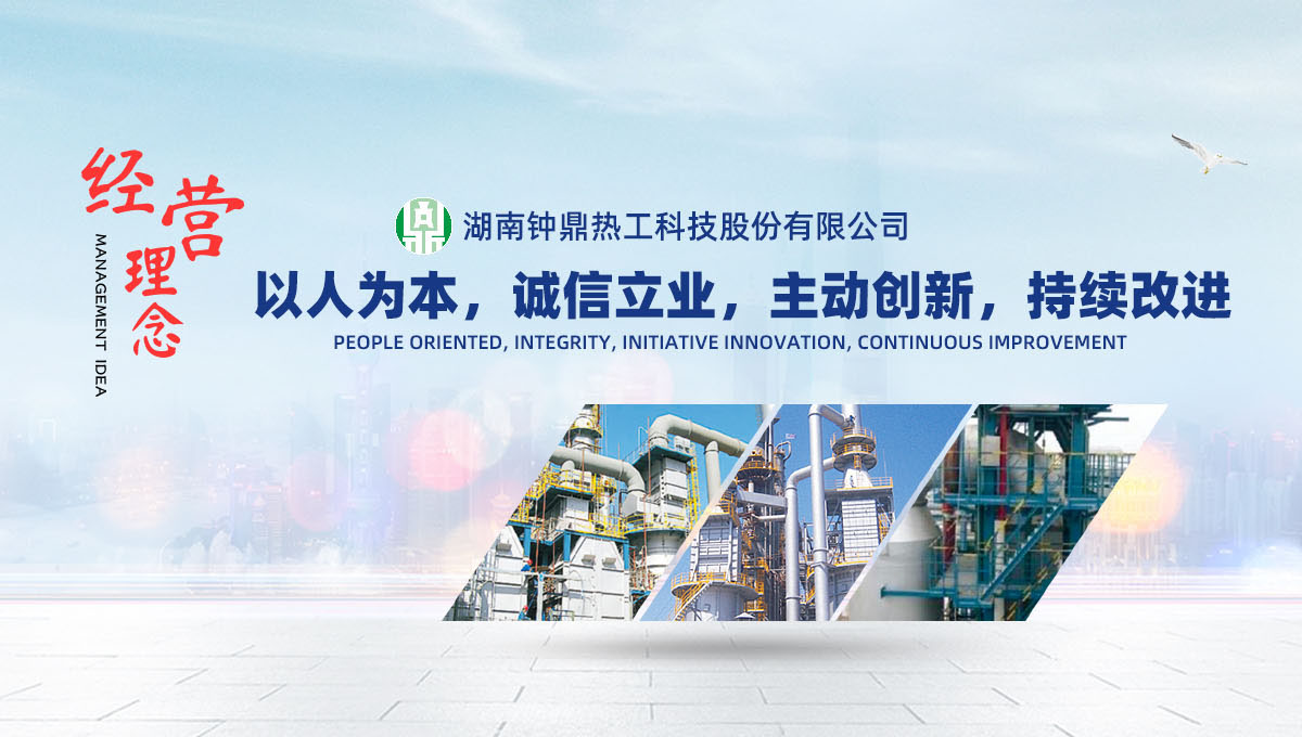 鐘鼎熱工以“節能環保 社會責任”為己任,本著嚴謹務實、創新奮進,以客戶為先的服務理念,竭誠為石化、有色、鋼鐵、建材等行業提供更優良的節能環保新技術新裝備,為“碧水藍天”的環保型社會貢獻企業的力量!
